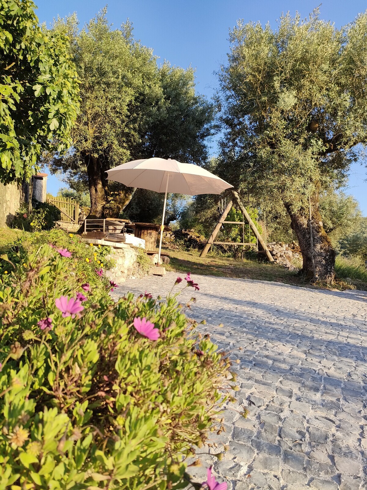 A casa dispões de uma cozinha rústica aberta para o jardim e a uma piscina que convida a verdadeiros momentos de relaxamento. Um páteo reservado oferece silêncio e contemplação, enquanto os quartos independentes proporcionam noites de descanso profundo, embaladas pela tranquilidade da aldeia.