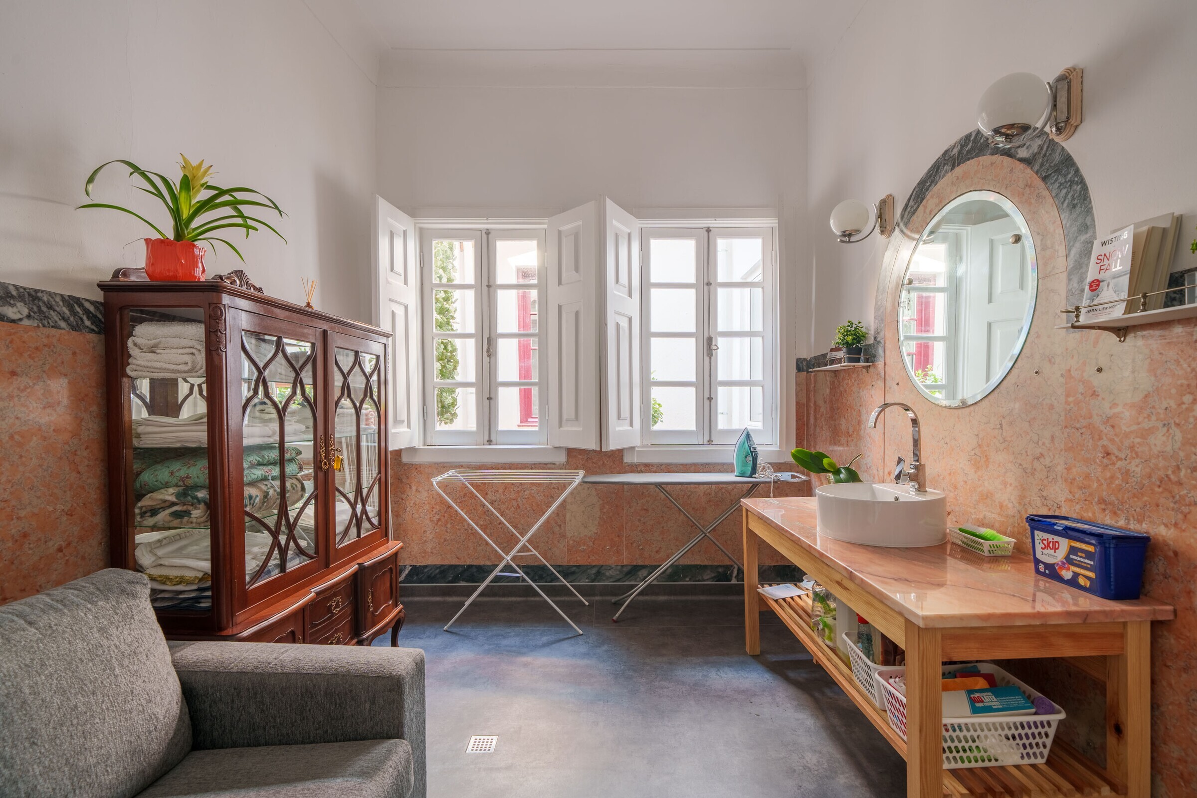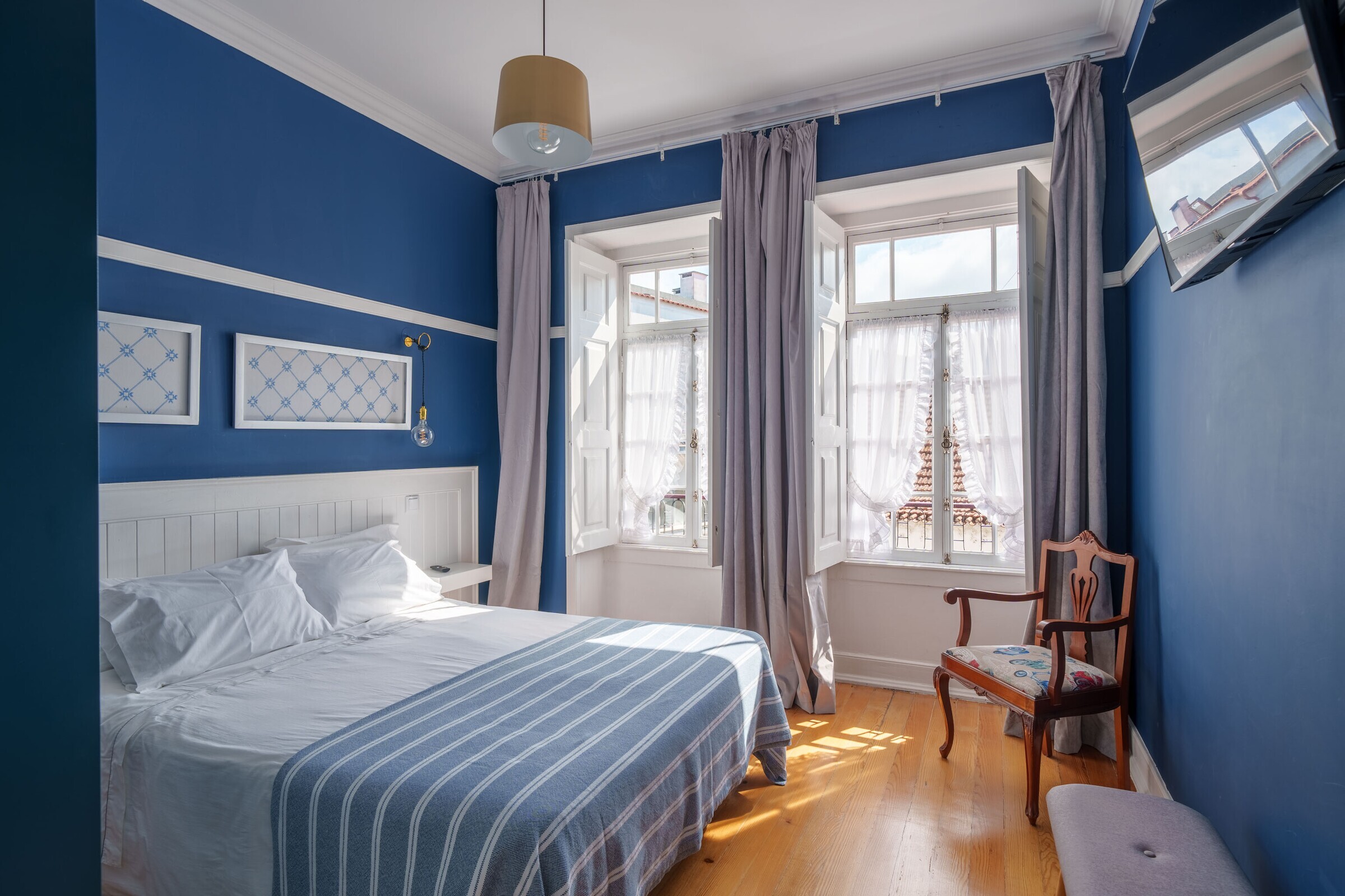 As suites situam-se no 2.º andar reabilitado (s/ elevador) de um edifício dos anos 30 do séc. XX, respeitando as principais características da construção original.